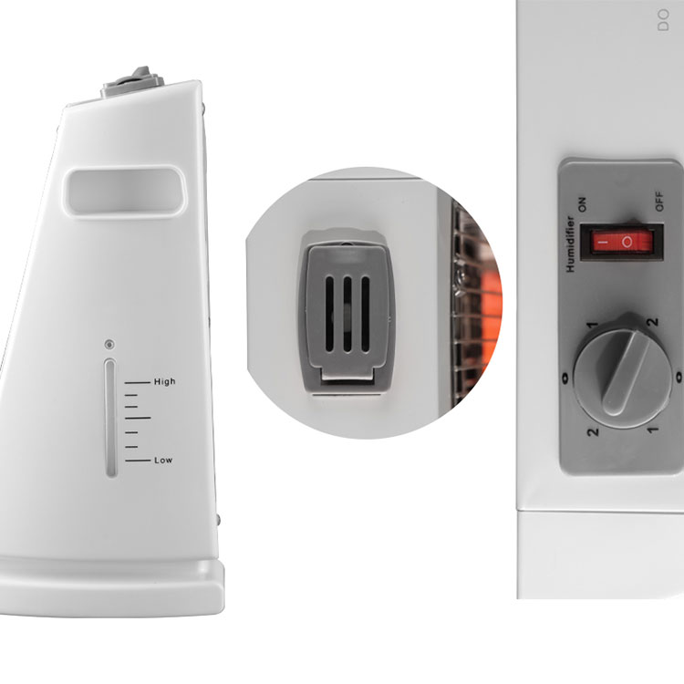 Ылғалдатқышы және турбо желдеткіші бар 1600 Вт қуаты бар 4 түтік кварц жылытқышы лезде жылу беру үшін 4 кварц жылыту түтігін пайдаланады. Тұтқаны қосқыш қыздыру қарқындылығын оңай реттеуге мүмкіндік береді, ал рокер қосқышы жоғарырақ жайлылық үшін ылғалдандырғыш пен турбо желдеткішті басқарады. Көрсетілген масштабтағы су ыдысы су деңгейін еш қиындықсыз бақылауға мүмкіндік береді. Қалбырлы рефлектормен және хромдалған торлы қақпақпен жасалған ол ұзақ мерзімділік пен тиімділікті біріктіреді. Үйлер, кеңселер және тиімді жылытуды қажет ететін кез келген кеңістік үшін қолайлы, ол алыс-инфрақызыл жылыту технологиясын қолданады, мұнда кварц сәулелену түтіктері заттармен тікелей жұтылатын алыс инфрақызыл сәулелерді шығарады және максималды жайлылық үшін жылуға айналады.